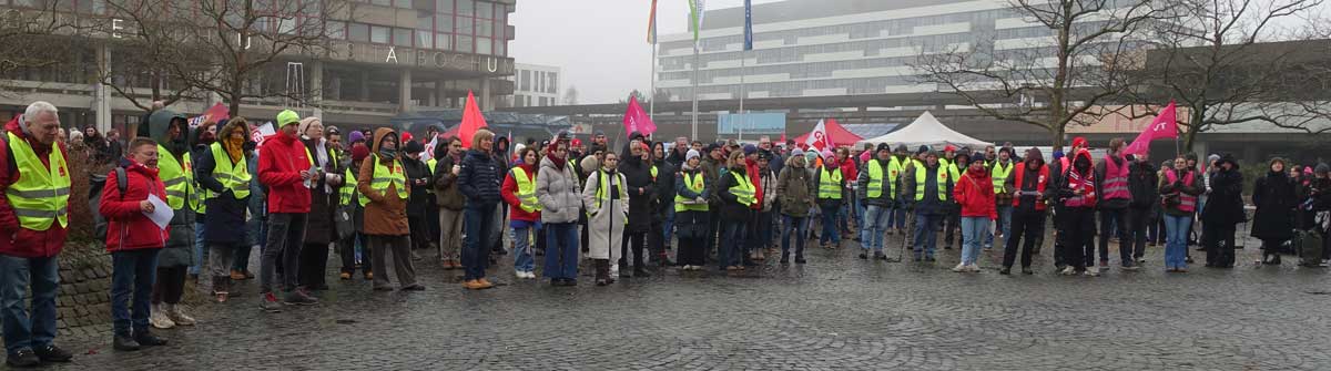 Im Rahmen der laufenden Tarifauseinandersetzung im öffentlichen Dienst der Länder ruft die Vereinte Dienstleistungsgewerkschaft (ver.di) die Beschäftigten am Mittwoch, den 4. Februar in Bochum zu einem ganztägigen Warnstreik auf. Betroffen sind Landesbetriebe und -dienststellen. Mit dem Warnstreik will ver.di den Druck auf die Arbeitgeber:innen der Länder vor der dritten Verhandlungsrunde erhöhen. „Viele Beschäftigte sind verärgert, dass es noch immer kein verhandlungsfähiges Angebot gibt“, sagt Claudia Bonan, stellv. Bezirksgeschäftsführerin ver.di Mittleres Ruhrgebiet: „Aussagen über ‚Inflation plus einen Schnaps obendrauf‘ sind eine Provokation und zeugen von wenig Wertschätzung.