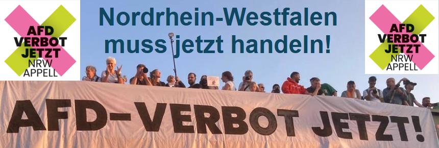 Die NRW-weite Kampagne „NRW-Appell Afd-Verbot“ wird ihre Auftaktveranstaltung in Bochum durchführen: »Am Sonntag, 8. Februar 16 Uhr geht es los! Der NRW-Appell für ein AfD-Verbot startet mit einer Auftaktveranstaltung in der Bochumer KoFabrik. Wir wollen erreichen, dass die Landesregierung NRW im Bundesrat für ein Verbotsverfahren gegen die AfD eintritt. 70 prominente Menschen aus NRW unterstützen den Appell und knapp 90 Gruppen aus ganz NRW haben beschlossen, die Kampagne zu unterstützen und in den nächsten Monaten für den Appell Unterschriften zu sammeln.