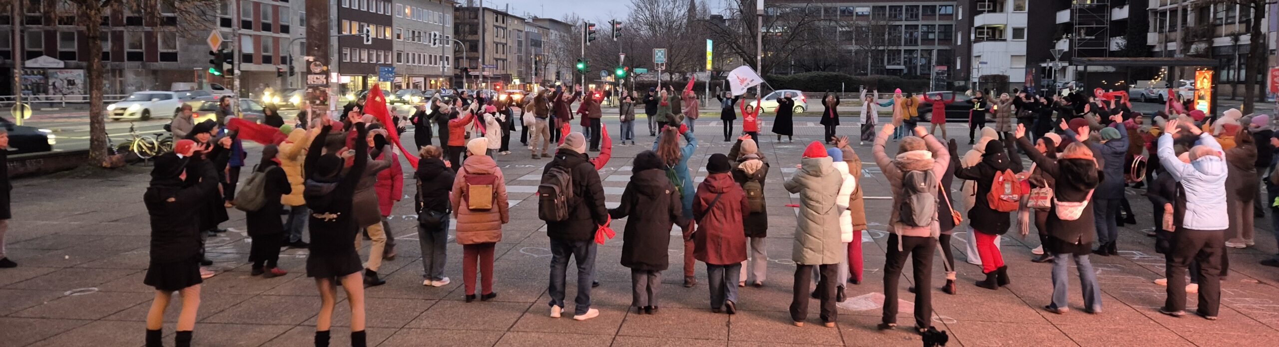 Am Samstag war ein Fernseh-Team des WDR bei der Initiative „Klare Linie gegen Rechts“, die sich Sorgen wegen der Nazi-Aktivitäten in der Kneipe Linie 5 macht, zu Gast. Die Mitarbeiter des WDR sprachen mit Menschen aus dem Viertel über die Situation und filmten Interviews. Anschließend ging die Filmcrew mit Mitgliedern der Initiative zum Platz vor die Bogestra, der gegenüber der Linie 5 liegt, um sich auch die Kneipe anzusehen und zu filmen. Es waren ca. 30 Teilnehmer:innen plus WDR-Team versammelt. Es gab keine Banner oder Fahnen.