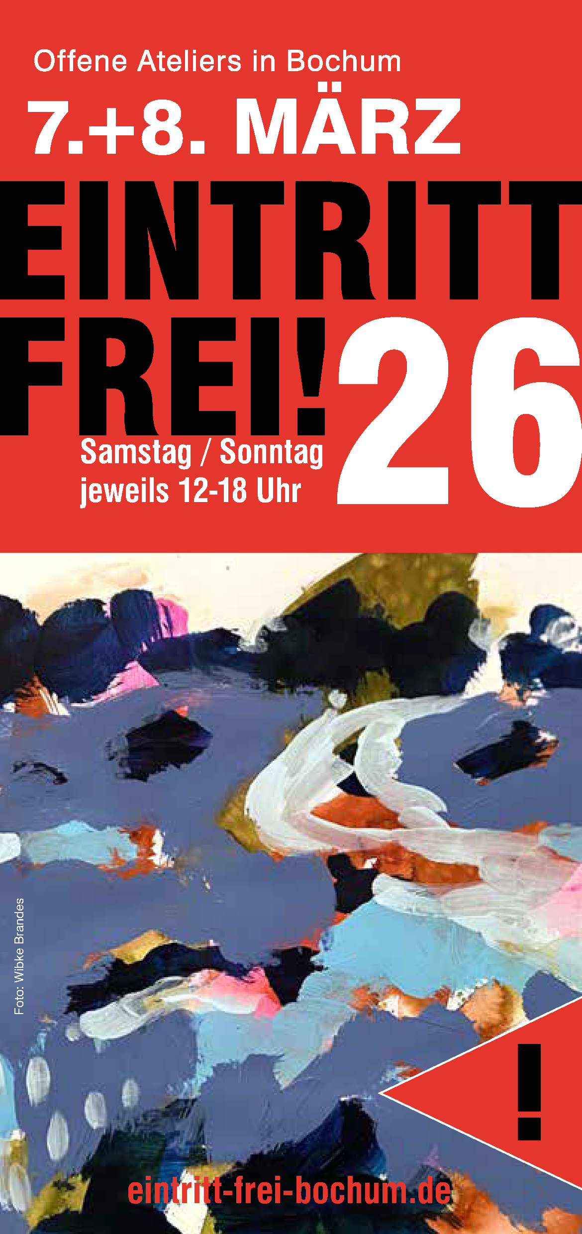 In einer Mitteilung der Stadt wird auf 20 Jahre „EINTRITT FREI!“ hingewiesen und über eine aus diesem Anlass stattfindende Video-Installation informiert: »Seit 2006 öffnen Bochumer Künstlerinnen und Künstler jährlich die Türen ihrer Ateliers, um ihre Werke in lockerem Ambiente zu präsentieren. Aus der Initiative „EINTRITT FREI!“ hat sich mit dem offenen Wochenende „EINTRITT FREI! – Offene Ateliers für Kunst und Design in Bochum“ eine Veranstaltung entwickelt, die ihren festen Platz in der Bochumer Kultur hat.
