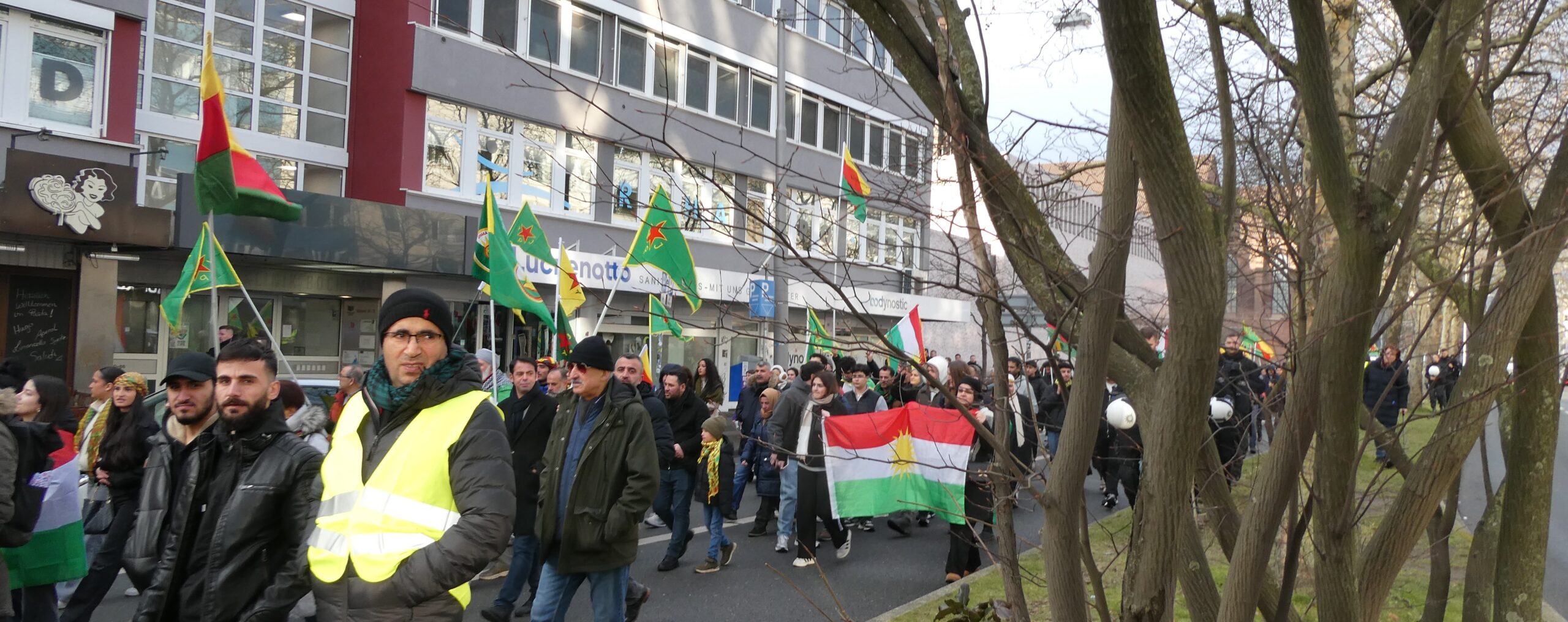 Am Samstag versammelt sich mehr als 350 Kurd*innen und Unterstützer*innen, um mit einer Kundgebung und lautstarken Demo in der Bochumer Innenstadt auf die dramatische Situation in Rojava hinzuweisen. Es wurden kurdische und YPG- und YPJ-Fahnen mitgeführt und Sprechchören wie „Jin Jiyan Azidî“ [Frau, Leben, Freiheit], „Kurd yek in“ [Die Kurden sind vereint] und „Bijî Berxwedana Rojava“ [Es lebe der Widerstand in Rojava] zog die Demonstration zum Schauspielhaus zu einer Zwischenkundgebung. Von da aus ging es weiter zum Hauptbahnhof. Begleitet wurde die ganze Aktion von einem riesigen Polizeiaufgebot. Mindestens zwei Hundertschaften der Bereitschaftspolizei waren im Einsatz.