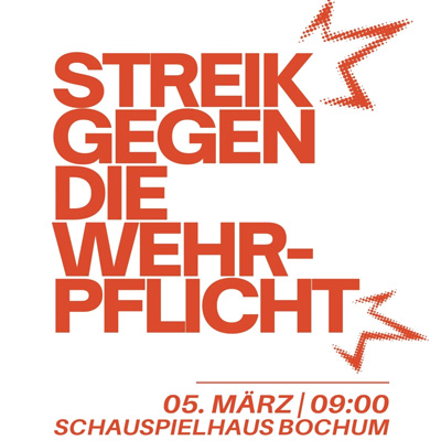 Das Bochumer Friedensplenum lädt zu einer Neuorganisierung der lokalen antimilitaristischen Arbeit ein: »Die dramatische Militarisierung unserer Gesellschaft macht es unserer Ansicht nach notwendig, dass wir unsere Arbeit überdenken und neu organisieren. Wir wollen das Friedensplenum wieder in seine ursprüngliche Funktion zurückführen. Es soll wieder ein Zusammenschluss aller Kräfte in Bochum sein, die sich antimilitaristisch engagieren. Die Gruppe, die sich bisher zwei Mal im Monat im Haus der Begegnung trifft, wird sich zukünftig DFG-VK Bochum nennen. In größerem zeitlichen Abstand soll sich ein Friedensplenum aller Gruppen und Organisationen treffen, die sich mit Friedenspolitik beschäftigen.