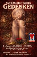 Auch in diesem Jahr ruft die Vereinigung der Verfolgten des Naziregimes – Bund der Antifaschistinnen und Antifaschisten (VVN–BdA) Bochum dazu auf, der Kämpfer gegen den rechten Kapp-Lüttwitz-Putsch von 1920 und der antifaschistischen Widerstandskämpfer gegen Faschismus und Krieg zu gedenken: