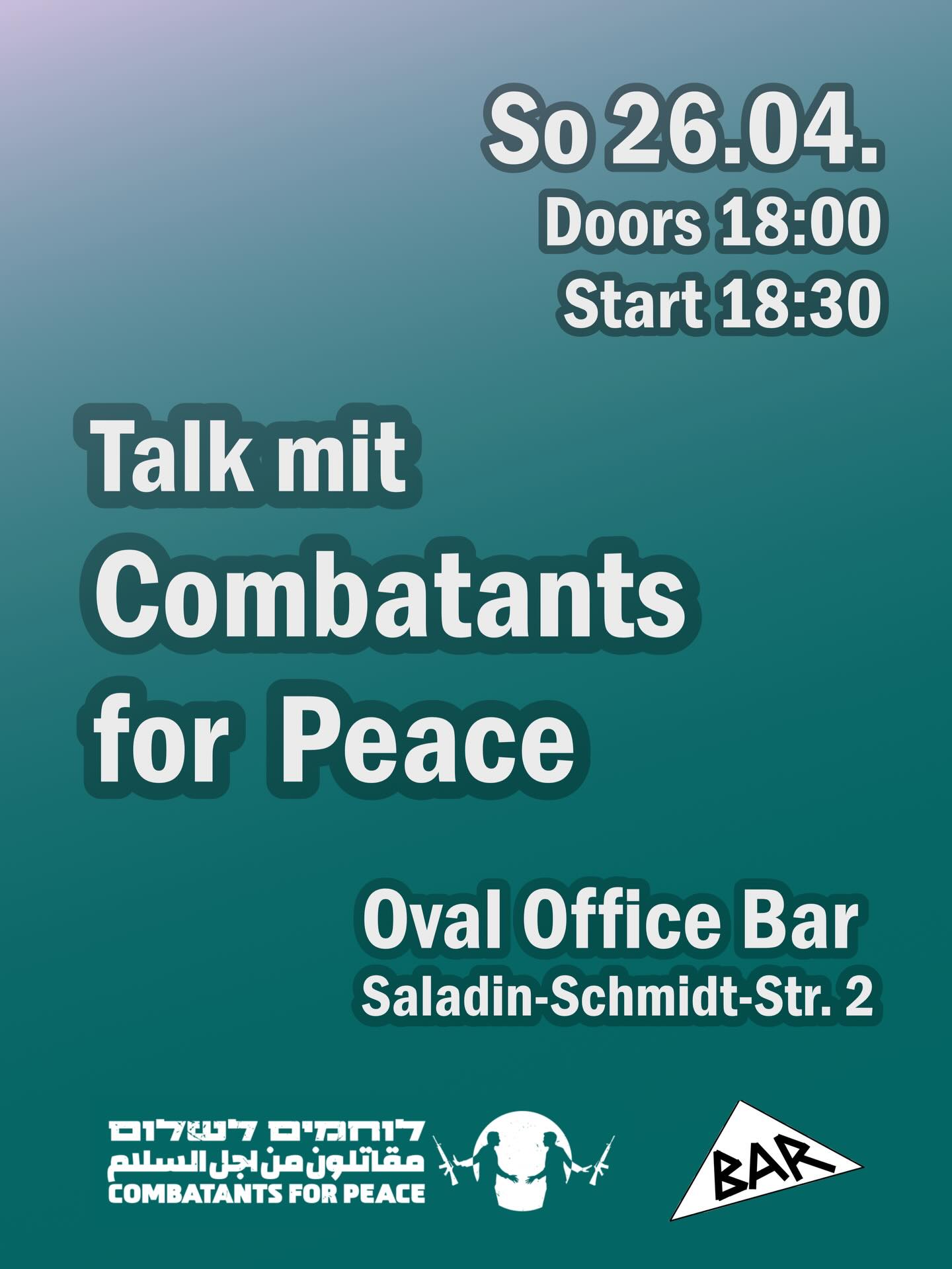 Combatants for Peace ist eine gemeinsame palästinensisch-israelische Graswurzelbewegung, die 2006 von ehemaligen Kämpfer*innen beider Gesellschaften gegründet wurde. Vereint durch die Überzeugung, dass Gewalt weder Sicherheit noch Gerechtigkeit oder Versöhnung bringen kann, setzt sich die Bewegung dafür ein, die israelische Besatzung und alle Formen von Gewalt durch gewaltfreie Aktionen, Bildungsarbeit und Gemeinschaftsaufbau zu beenden.