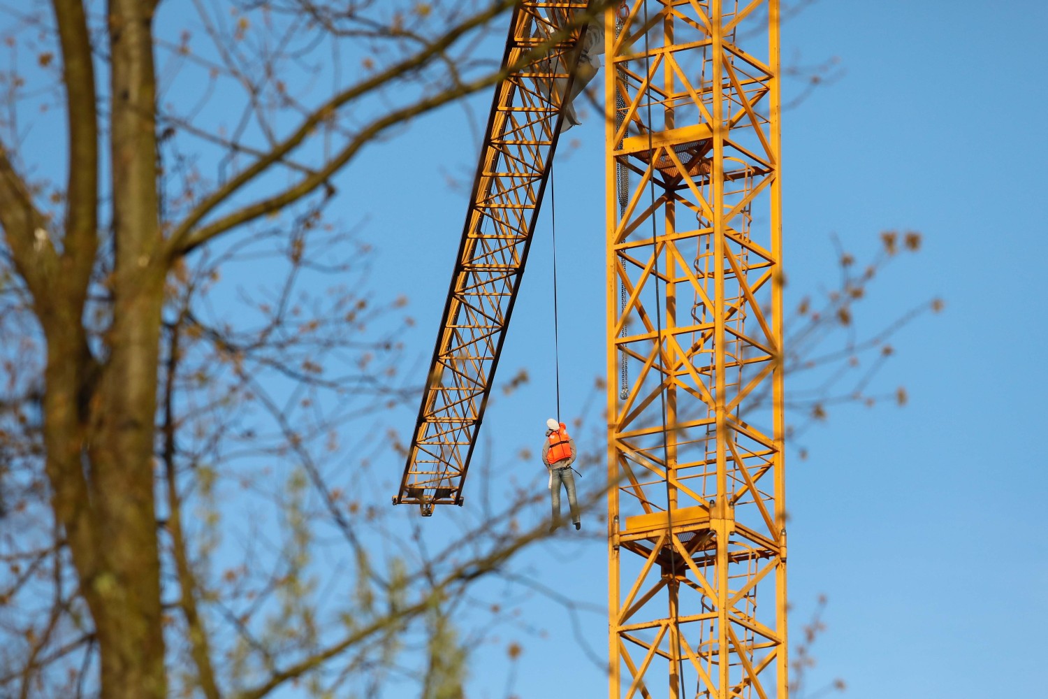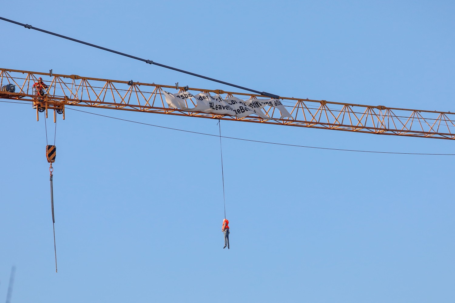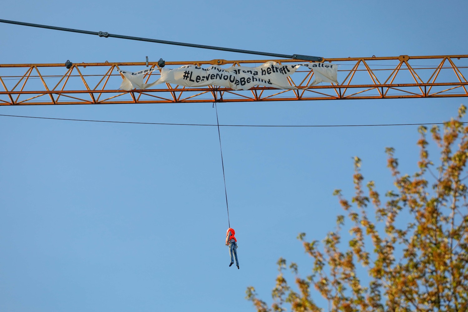 Das Banner sowie die am Kran befestigte Puppe wurden nach etwa einer Stunde durch Feuerwehr und Polizei entfernt.