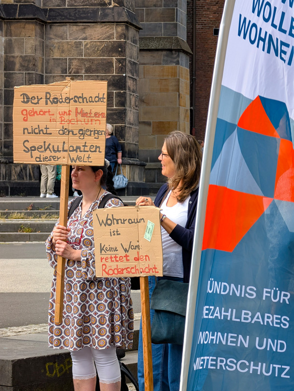 Liebe Mitbürgerinnen und Mitbürger, sehr geehrte Politikerinnen und Politiker, wir stehen heute hier, weil rund 100 Bochumerinnen und Bochumer ihr Zuhause verlieren sollen. Nicht aus freien Stücken, nicht durch Eigenbedarf, sondern weil ein Investor aus reiner Profitgier eine ganze Siedlung Stück für Stück zu Geld machen will. Die denkmalgeschützte Siedlung Am Röderschacht wurde von der Vonovia verkauft ~ und hätte durch das Vorkaufsrecht in städtischen Besitz übergehen können. Die Stadt hat diese Chance nicht genutzt. Sie hätte die Siedlung der VBW zuführen können – einem kommunalen Träger, der für bezahlbaren Wohnraum steht.