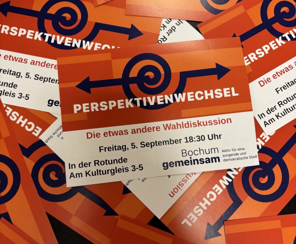 Wer genauer wissen möchte, was und wer am Freitag zu erwarten ist, der wird durch das aktuelle Interview auf der Seite von Bochum gemeinsam aufgeklärt. Dort erläutern Andrea Wirtz und Törk Hansen wie die „andere Wahldiskussion“ ablaufen soll. Wer dabei sein wird: „Zuerst natürlich die Menschen aus der Zivilgesellschaft und wir hoffen, dass – trotz der vielen anderen Veranstaltungen im Moment – Viele kommen. Dann die OB-Kandidat*innen der demokratischen Parteien. Zugesagt haben die Kandidat*innen von SPD/Grüne, Linke, Volt/Stadtgestalter, UWG, Die Partei und die FDP mit einem Vertreter. Und schließlich Kandidierende für Rat und Bezirksvertretungen – da gibt es bisher Rückmeldungen von allen außer SPD und CDU.“ Weitere Informationen zum Ablauf und den Spielregeln in dem Interview auf der Seite von Bochum gemeinsam.