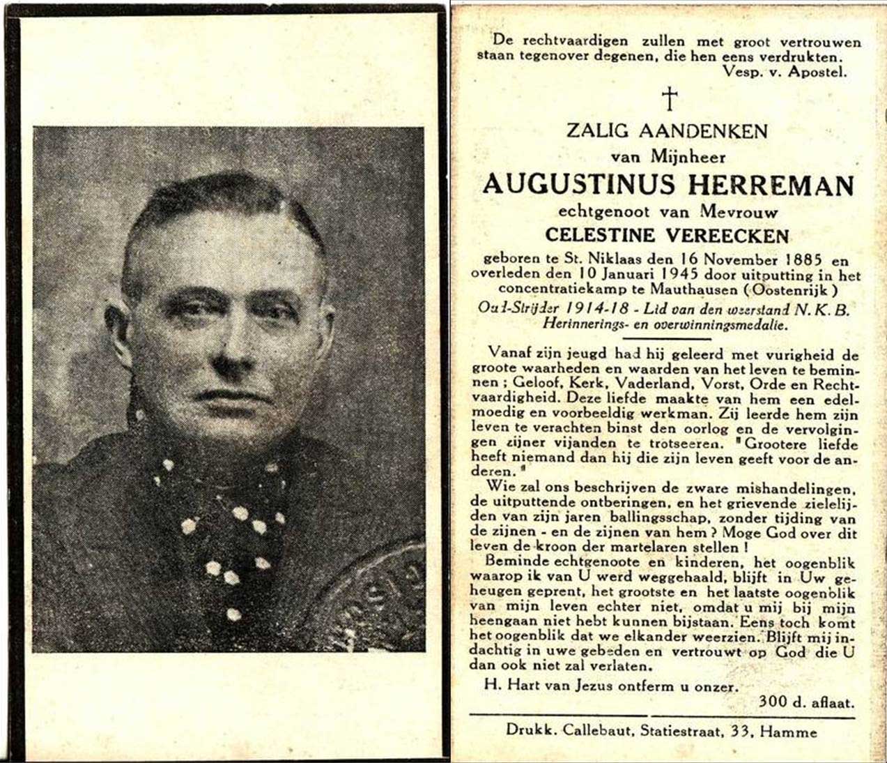 Als „Stin der Färber“ ist Augustinus Herreman aus Hamme zwischen Antwerpen und Gent bekannt. 1885 geboren bekommt er nach Heirat mit Celestine Vereecken drei Kinder, darunter auch Rachel, die Mutter von Frankie. Von 1914 – 1919 ist er Kriegsgefangener im für Belgien fürchterlichen Ersten Weltkrieg. Als NS-Deutschland die Benelux-Staaten besetzt, betätigt Augustinus sich in der NKB, der konservativ-patriotischen königsnahen Widerstandsbewegung „Nationale Koningsgezinde Beweging“. Die NKB unterstützt Zwangsarbeitsverweigerer, sammelt militärische Informationen, hilft untergetauchten Juden und alliierten Piloten, legt Verstecke für Waffen und Dokumente an.