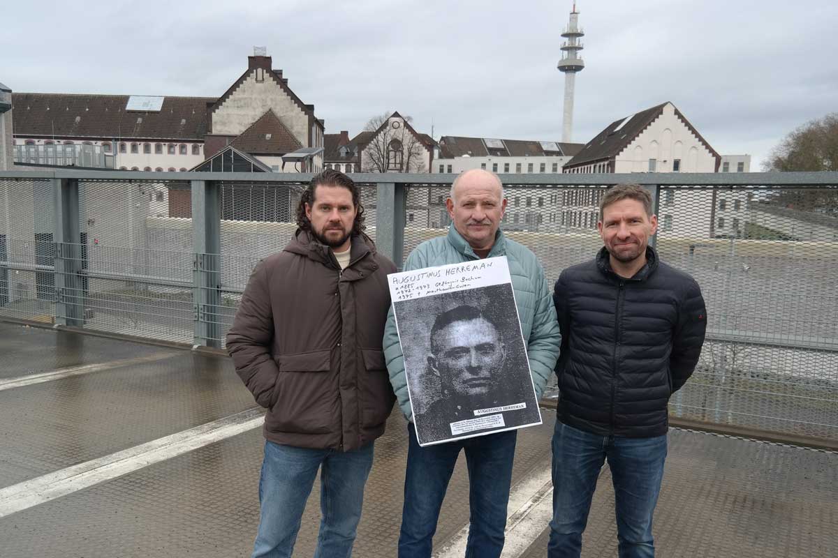 Für den Belgier Frankie Aendenhof und für seine Söhne Michael und Mitch ist es schon die zweite Reise auf den Spuren des Großvaters bzw. Urgroßvaters Augustinus Herreman (1885-1945). 2019 waren sie an seinem Todesort im KZ Gusen beim Lager Mauthausen in Österreich. Dort verstarb der 59-jährige Stin am 10. Januar 1945, geschwächt von dreijähriger Odyssee durch deutsche NS-Strafanstalten.