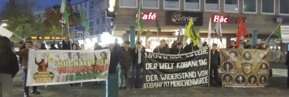 Die kurdische Jugend in Bochum hat am vergangenen Freitag auf einer Kundgebung an den Welt-Kobanê-Tag erinnert. Vor 10 Jahren wurde Kobanê erfolgreich gegen einen Angriff des „Islamischen Staates“ verteidigt. In seiner Rede erklärte Agir Mustafa Birhimeoglu, dass dies zu einem Symbol für den antifaschistischen Kampf und für die Hoffnung auf Freiheit, Selbstbestimmung und Gleichberechtigung geworden ist.
