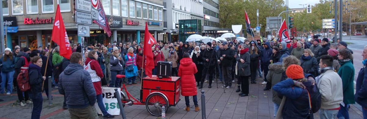 Die Linke in Bochum hatte am Sonntag zu einer Kundgebung aufgerufen, bei der gegen die rassistische Äußerung von Friedrich Merz zum Stadtbild protestiert wurde. Fast 300 Teilnehmer:innen erlebten mehrere empörte und kämpferische Redebeiträge. Nagea Belekhrif formulierte die Stimmung vieler Anwesenden: »Ich stehe heute hier mit einem Gefühl, das so widerwärtig ist, dass mir die Worte fehlen. Oder besser gesagt: Mir fehlte ein Wort. Denn für das, was ich empfinde, wenn ich an Herrn Merz und seine jüngste Äußerung denke, gibt es noch keine Bezeichnung.