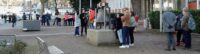 Es wurden Flugblätter an die vorbeieilenden Bürger*innen verteilt, von denen sich einige spontan der Mahnwache anschlossen.