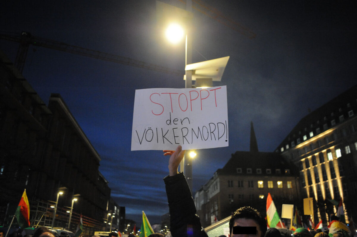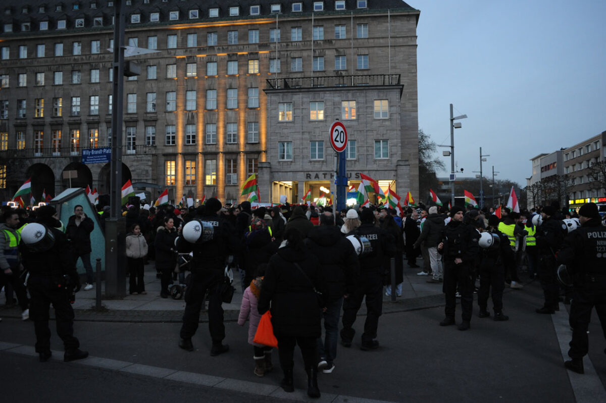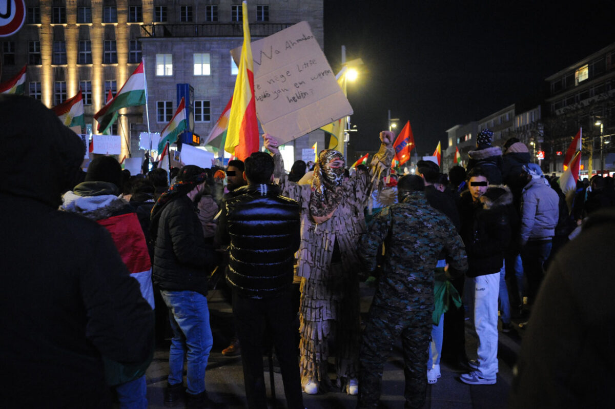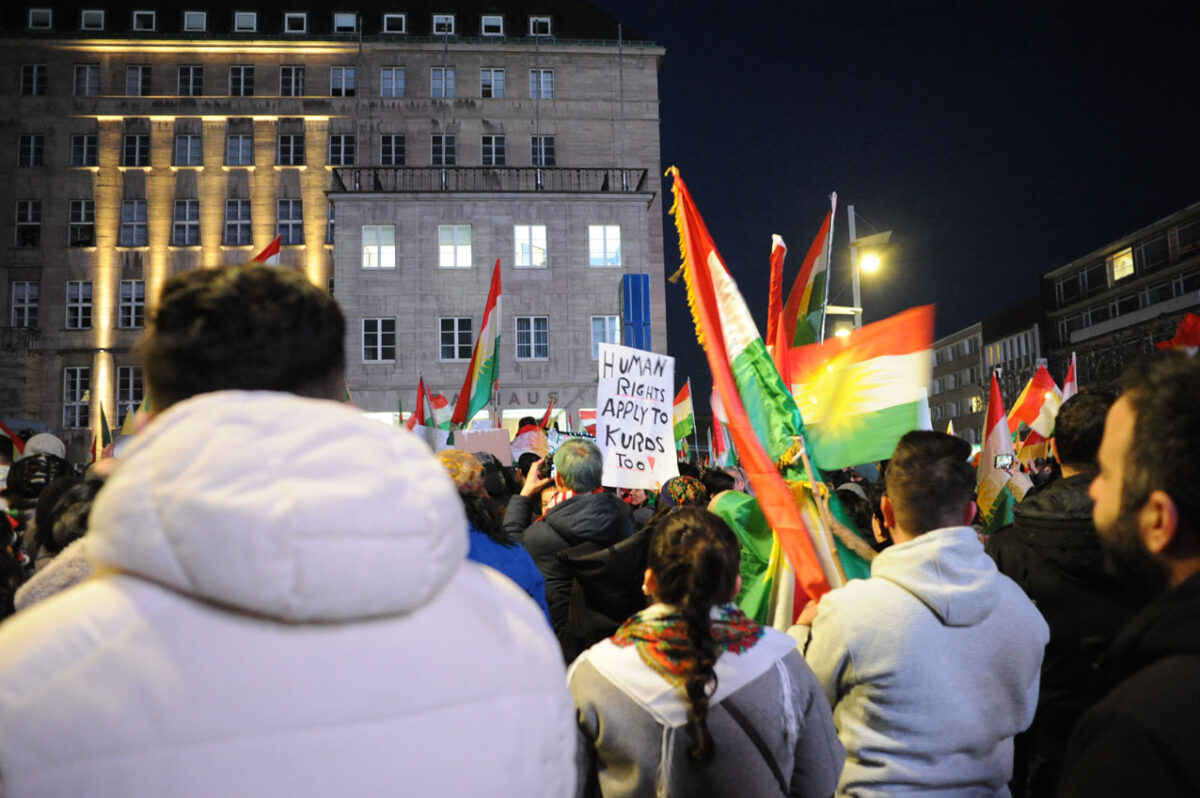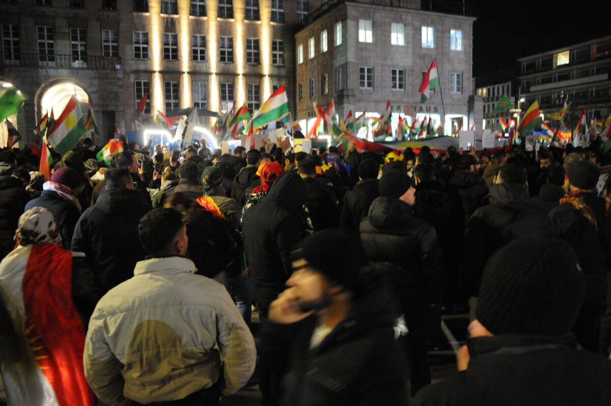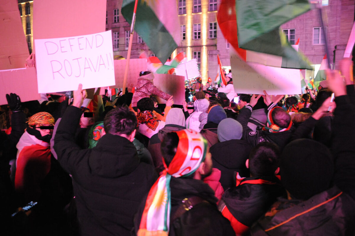 Am Donnerstagabend fanden sich mehrere Tausend Menschen, darunter viele Syrer*innen und Kurd*innen am Rathaus zu einer Kundgebung zusammen. Der Grund war die aktuelle Situation in Syrien – die sich ständig verschärft – und dort stand die Solidarität mit den kurdischen Menschen im Vordergrund. Die syrische Regierung unterdrückt und bekämpft mit Unterstützung aus dem Irak und der Türkei Kurden und Kurdinnen. Diese hatten Verantwortung übernommen und den IS bekämpft.