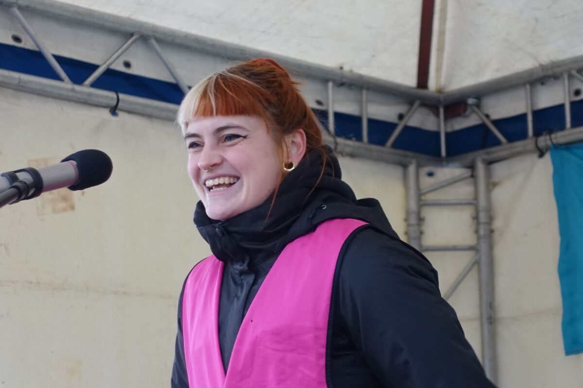 Elias Schmitt von der GEW-Hochschulgruppe schilderte an Beispiel seiner Biografie, wie normal es für wissenschaftliche Mitarbeiter:innen ist, kein normales Arbeitsverhältnis zu haben. Die Stellen sind in vielen Fällen befristet und nur sehr selten Vollzeit-Arbeitsplätze. Fast alle arbeiten aber Vollzeit und mehr. In seinem ersten Job musste er Drittmittel einwerben, danach wurde er in der Lehre eingesetzt, was eigentlich nicht zu seinen Aufgaben zählte.