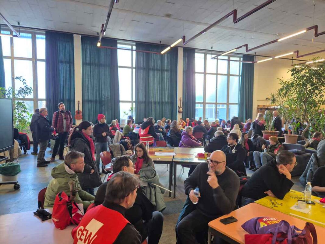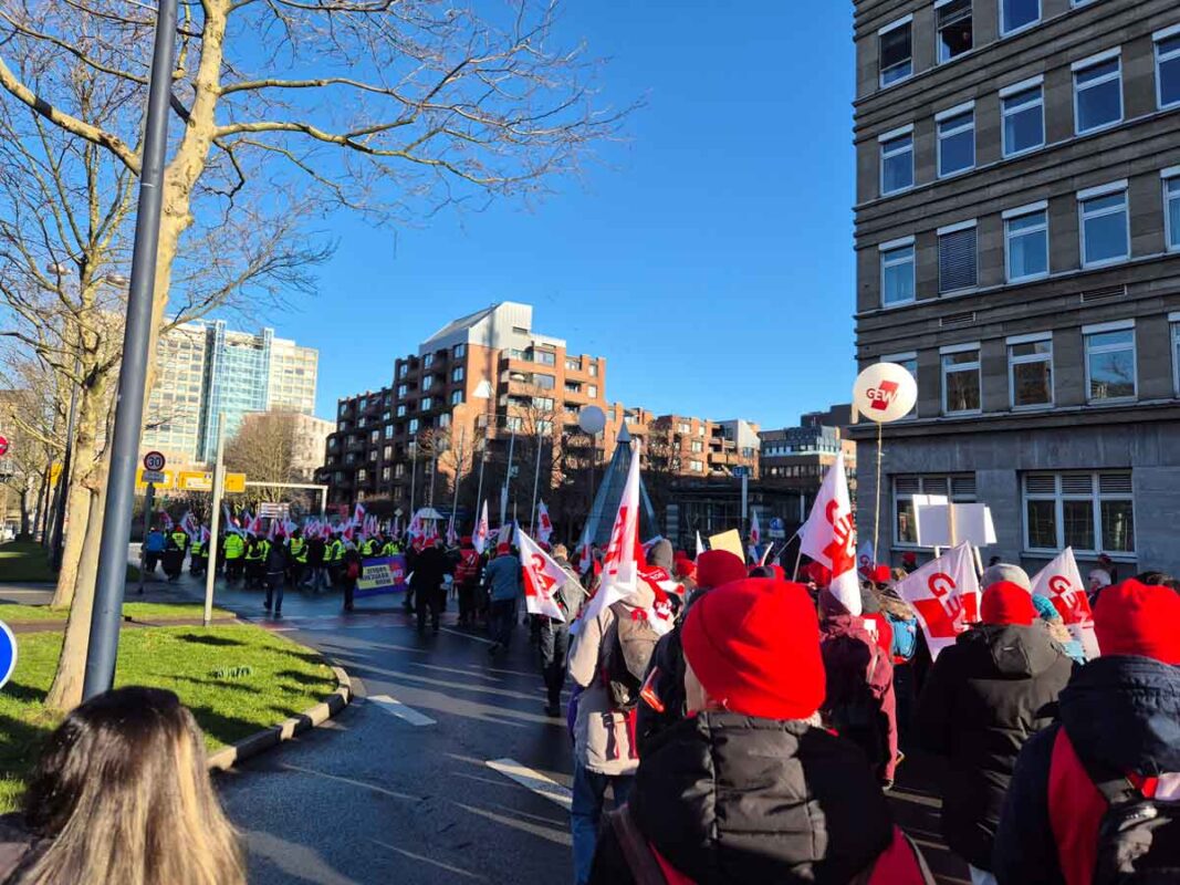 Die Gewerkschaft Erziehung und Wissenschaft (GEW) in Bochum berichtet: »Ein entschlossenes Zeichen für bessere Arbeitsbedingungen und eine gute Gesellschaft hat unsere Gewerkschaft Erziehung und Wissenschaft mit dem Warnstreik am vergangenen Mittwoch in Dortmund gesetzt. Mehrere hundert Beschäftigte folgten dem Aufruf der GEW. Nach einem ersten Zusammentreffen im Streikcafé im Westfalenkolleg ging es in einem Demozug gemeinsam in die Dortmunder Innenstadt. Gemeinsam mit der DGB-Schwestergewerkschaft ver.di haben die Kolleginnen und Kollegen die folgenden Forderungen laut werden lassen: