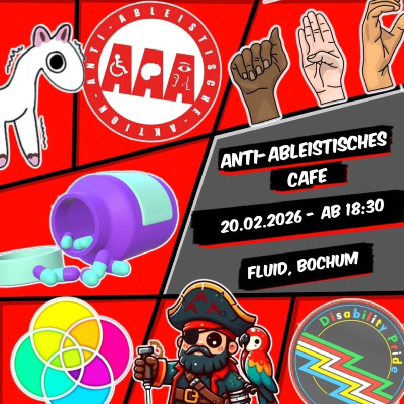 Die Anti-ableistische Aktion Ruhr lädt nächsten Freitag ins Fluid ein: »Da ist der Monat Februar fast schon wieder um. Also Zeit für ein weiteres Café der AAA. Diesen Monat möchte die Küfa mit einer leckeren Linsensuppe überzeugen. Termin zur Verkostung ist der 20.02.26, um 18:30 Uhr. Wir freuen uns auf euch.