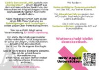 Es gibt dort auch die Möglichkeit den NRW-Appell zu interzeichnen. Wer nicht kommen kann, hat auch die Möglichkeit dies online zu erledigen: NRW Appell: AfD-Verbot jetzt | WeAct.