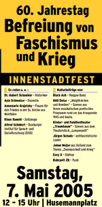 Am Samstag, dem 7 Mai, am Vortag des 60 Jahrestages der Befreiung und des Kriegsendes wollen wir Blumen an den