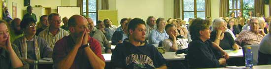 zwei kleine Tische unmittelbar vor der Bühne platziert worden. Die circa 30 EinwenderInnen verloren sich in