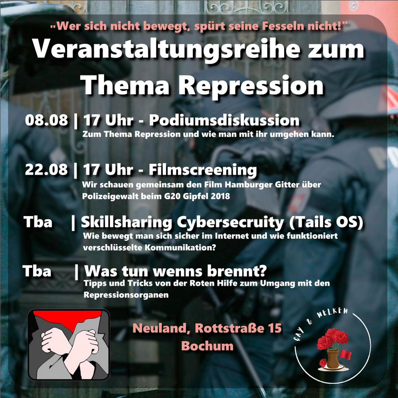 Das Bochumer Friedensplenum und das Bochumer Bündnis gegen Rechts appellieren an die Bochumer Justiz, nun auch die Strafverfolgung junger Antifas zu beenden, die im März letzten Jahres eine Bochumer Moschee gegen die grundrechtsfeindlichen Attacken einer Pro-NRW-Demonstration schützen wollten und dabei in einen eskalierenden Polizeieinsatz gerieten. mehr…
