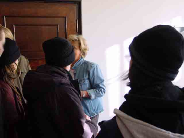 Nach einigem hin und her bat sich ein Mitglied der Gruppe an, einen Termin auf seinen Namen zu vereinbaren. Herrn Heine unterstellte dem jungen Mann allerdings sofort, dass sein Name falsch wäre. Auch das komplette aufsagen der Adresse durch andere Gruppenmitglieder konnte den Mann nicht davon überzeugen, dass der Name nicht falsch war. Er versuchte die Leute dazu zu überreden einen Termin über eine ihm bekannte Person aus dem linken Spektrum zu machen. Das diese Person nicht vor Ort war, und gar nicht hätte gefragt werden können, ob der Gebrauch ihres Namens für einen Termin mit dem OB genutzt werden dürfte, interessierte Heine ebenfalls nicht. Ausserdem kam eine Reduzierung der Gruppe auf einen der Stadt schon bekannten Personenkreis für die AZler nicht in Frage. Die Gruppe hat keinen Anführer oder offiziellen Sprecher. Es könnte zwar vereinbart werden, dass zu dem Termin nur ein paar VertreterInnen kommen würden, aber wer diese sein würden, würde sich erst später klären, so die AZ-Gruppe.