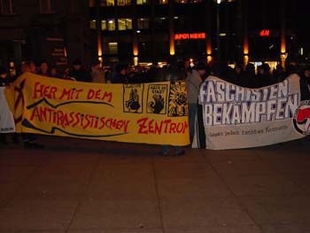 Ab 18 Uhr trafen sich etwas unter 150 DemonstrantInnen zu einer Spontandemonstration für ein AZ in Bochum am Hauptbahnhof. Während die Leute auf weitere DemonstrantInnen warteten, mussten sie Zeugen werden, wie die Bochumer Polizei mit ausländisch aussehenden Menschen umspringt. Zwei schwarze Männer die sich schon längere Zeit am Bahnhof aufhielten und auf ihren Zug warteten wurden kurz vor dem Eintreffen des Zuges einer Personenkontrolle unterzogen. Auf den Hinweis hin, dass die beiden ihren Zug bekommen müssten reagierten die Polizisten nicht. Einige DemonstrantInnen werten diese Personenkontrollen, welche so angelegt war, dass die beiden ihren Zug verpassen mussten, vor einer antirassistischen Demonstrationsgruppe als gekonnte Provokation der Demo durch die Polizei, um die Situation eskalieren zu lassen. Zum Glück blieb allerdings alles friedlich !